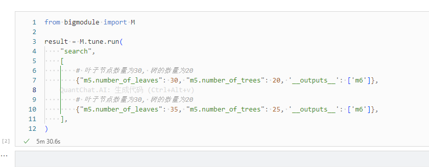 我们创建一个机器学习算法策略, 将可视化画布转化为代码形式: